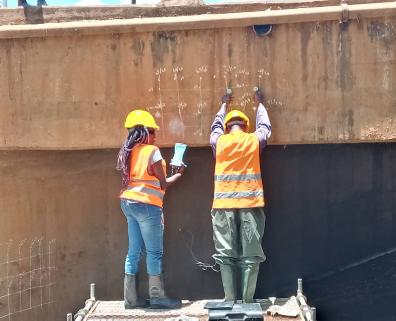At ROBERT WARREN we conduct Destructive and Non Destructive Tests (NDT) for materials such as concrete, steel, bricks, mortar and road pavements. The objective is to determine the potential extent of distress for in-service buildings/structures. The methods used at ROBERT WARREN include visual inspection, measuring, photographing, probing and sampling.